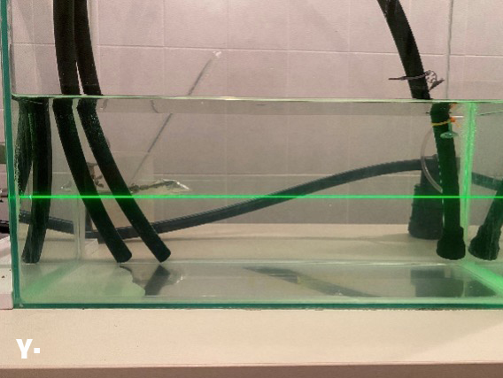 Επειδή, όπως αναφέρθηκε, οι πολύ μικρές φυσαλίδες δεν είναι δυνατό να παρατηρηθούν και να μετρηθούν, προκειμένου να διαπιστωθεί αν παράγονται/υπάρχουν φυσαλίδες πολύ μικρότερου μεγέθους, χρησιμοποιήθηκε δέσμη laser ώστε να εξακριβωθεί η ύπαρξη τους οπτικά, χωρίς ωστόσο να είναι δυνατό να προσδιοριστεί το μέγεθος τους. Ελήφθησαν φωτογραφίες σε διάφορους χρόνους μετά την παύση λειτουργίας της αντλίας, τόσο στη δεξαμενή όσο και σε ποτήρια ζέσεως (σκεπασμένα με μεμβράνη) που περιείχαν δείγμα από τη δεξαμενή μετά την παύση λειτουργίας της αντλίας. Ταυτόχρονα, ελήφθησαν φωτογραφίες με τη δέσμη laser και από δείγμα «αναφοράς», το οποίο ήταν καθαρό νερό.